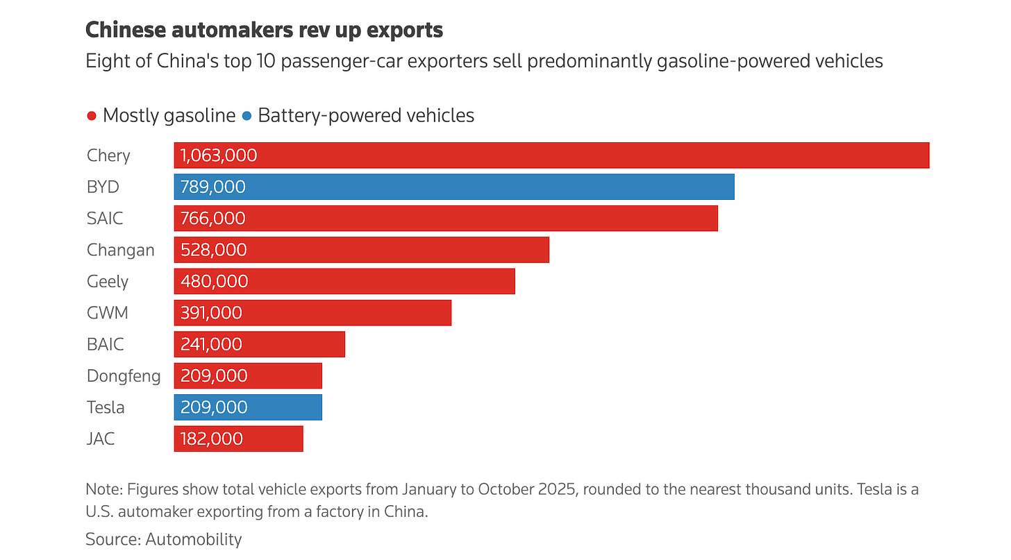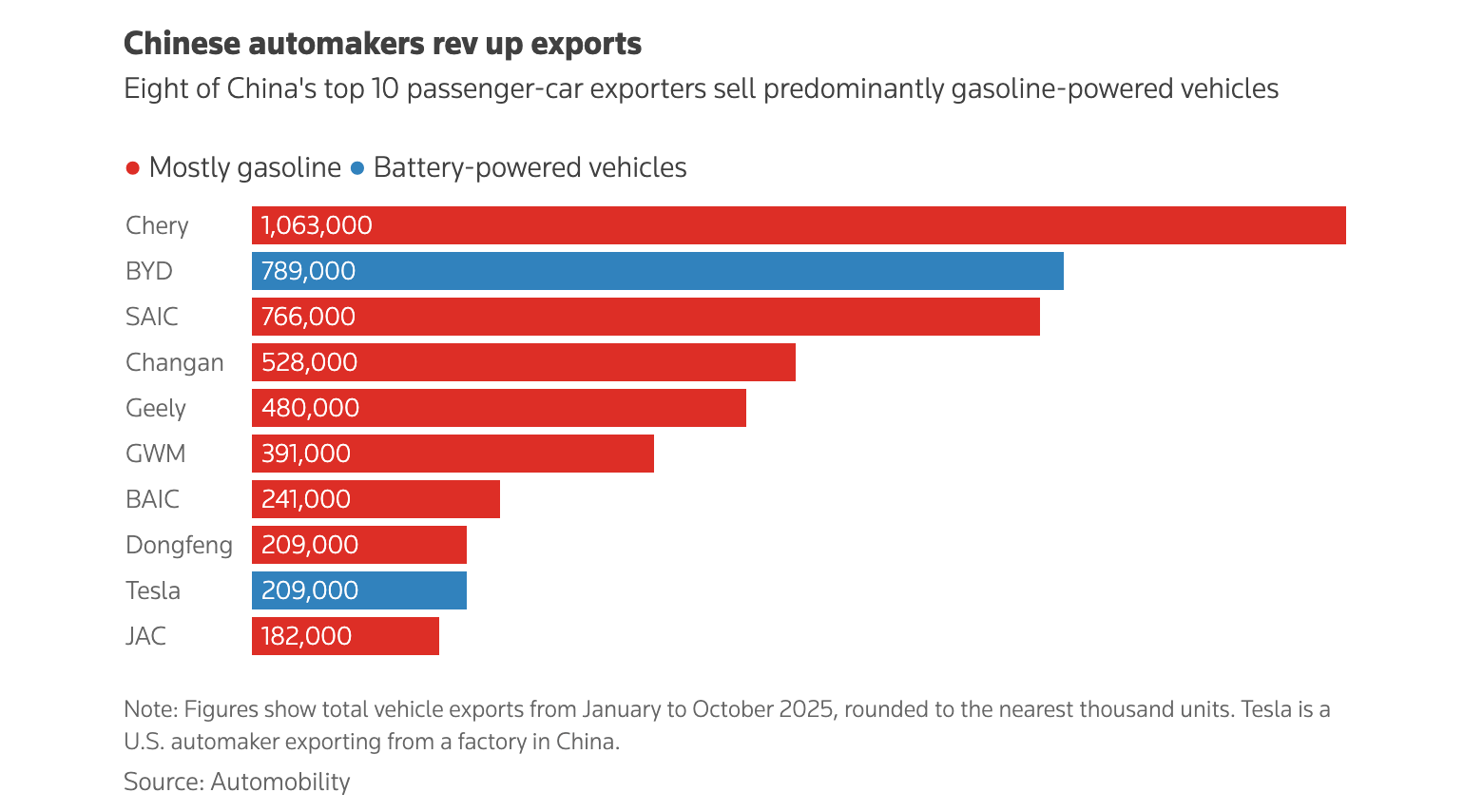 The surge of vehicle exports from China in the past five years has been powered mainly by state-run automakers (and Western brands such as GM’s Chevrolet) putting petrol-burning models they cannot sell on ships for Eastern Europe, Latin America and Southeast Asia, Reuters auto reporter Nick Carey shows in a data-rich report.